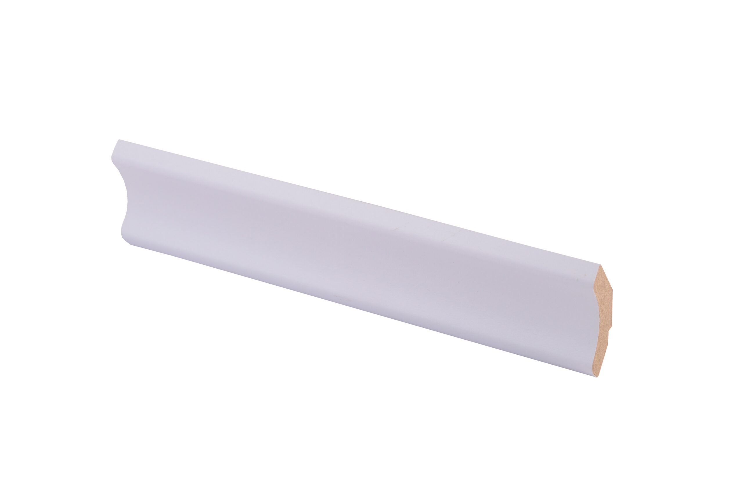 Golvlist för att avsluta skarven mellan golv och vägg. Kabelkanalen på baksidan av listen gör det möjligt att dra kablar diskret bakom listen.